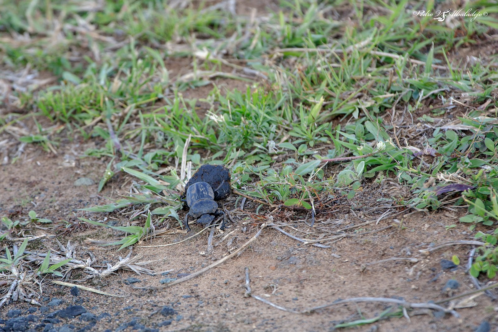 -Escarabajo pelotero gigante aplanado (Pachylomera femoralis).